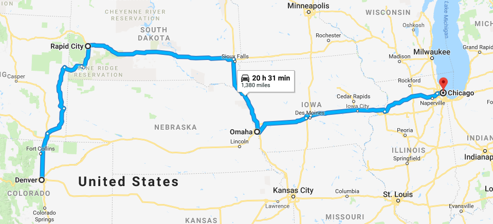 Anyone with a map could have seen that excuse was a blatant lie – Rapid City is a nearly seven-hour drive due north from Denver. Omaha is straight east about the same distance. Seriously, look at how much ground Etienne covered: