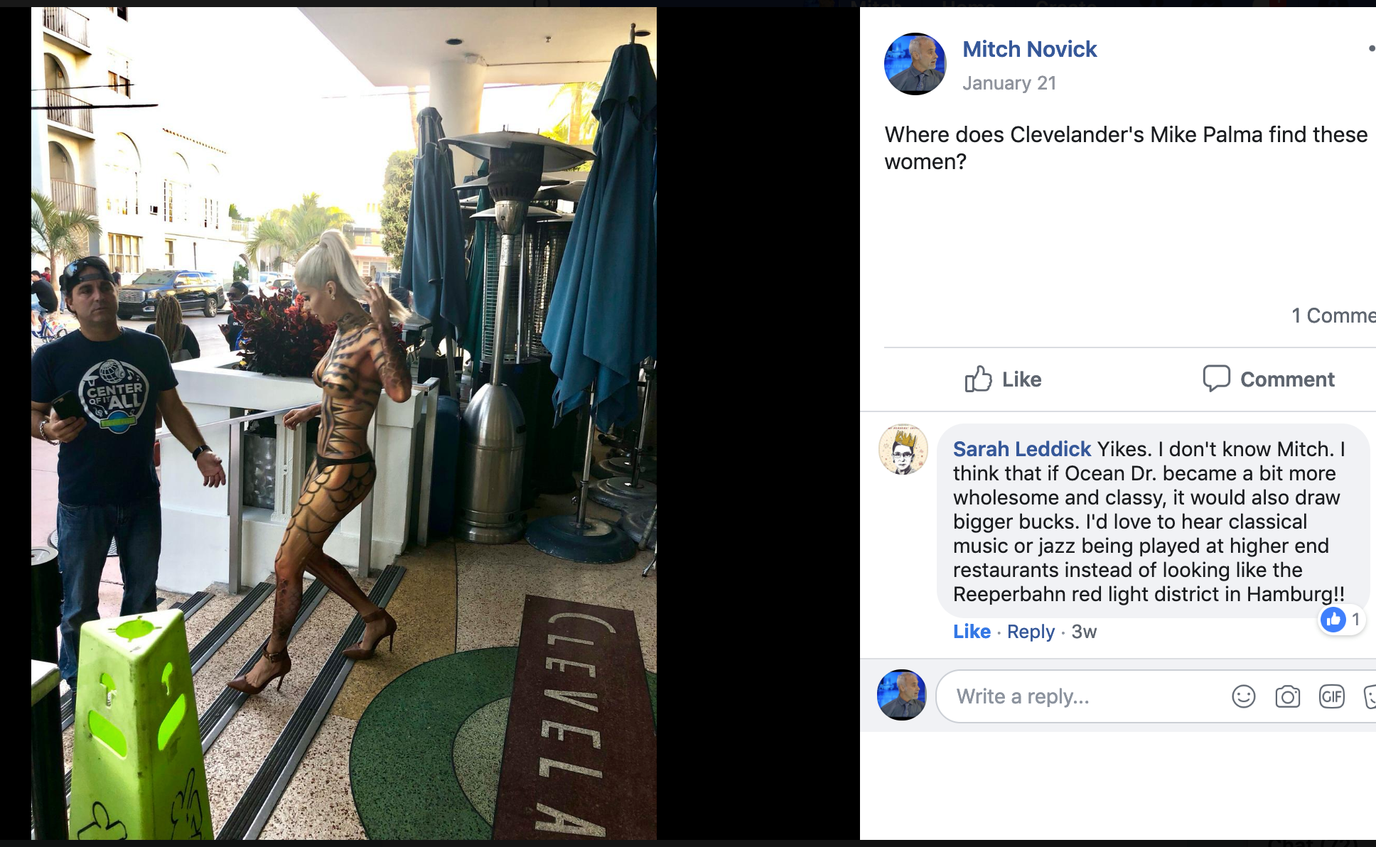 This past January, Novick complained about a scantily clad model photographed on the steps of the Clevelander.