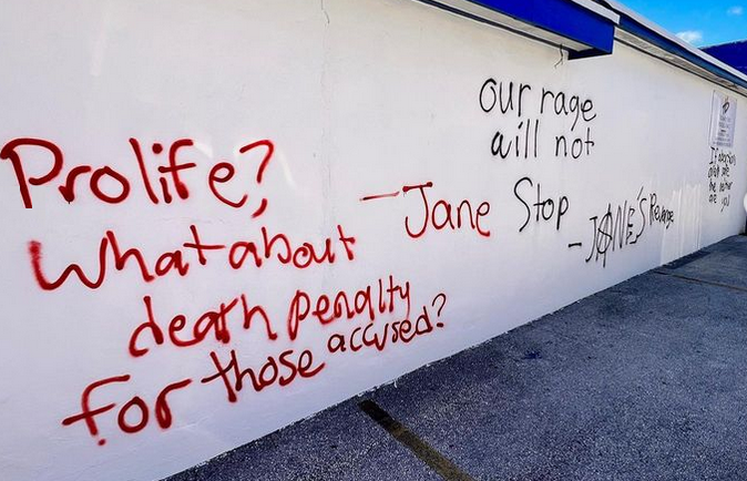 The message “Jane’s Revenge” and the circled-A anarchy symbol were tagged in graffiti on the walls of pro-life pregnancy centers in the Miami area between May and July last year, along with the warning: “If abortions aren’t safe, neither are you.”