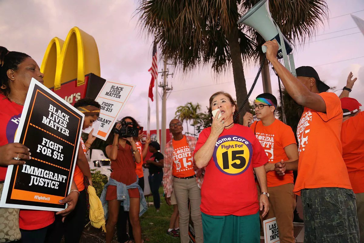 Workers strike at the McDonald’s in North Miami November 29, 2016.