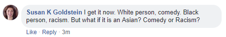 Goldstein initially denied she wrote the comment and claimed someone else had posted the text under her name. After a reporter read the quote back to her, though, she no longer denied writing it and instead said she was having a discussion “among friends.” She vehemently denied her comment was racist.