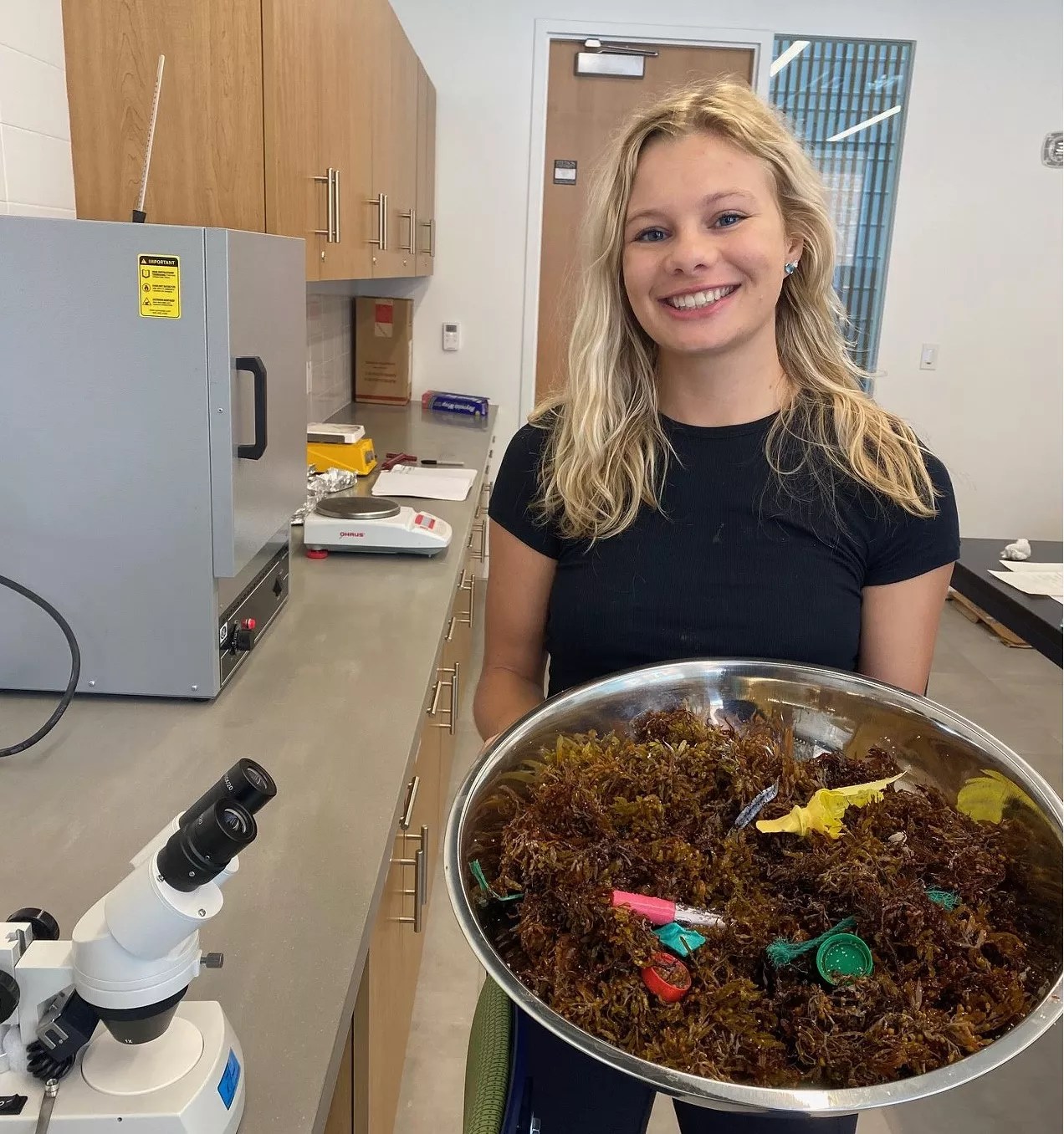 In a new study, Stetson University student Charlotte Kraft and environmental science professor Wendy Anderson have discovered that a strikingly high proportion of the stinky brown seaweed piles arriving on shore consists of seaborne plastic pollutants.