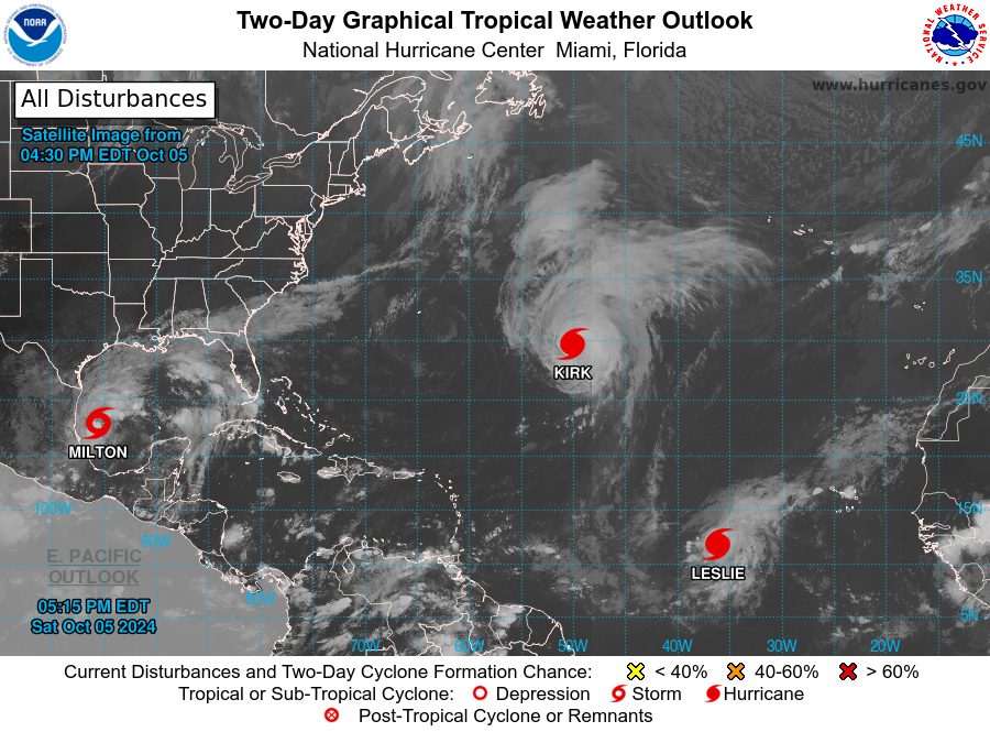 “Maximum sustained winds are near 40 mph (65 km/h) with higher gusts. Steady to rapid strengthening is forecast during the next few days. Milton is forecast to become a hurricane Sunday night, and it could become a major hurricane while it moves across the central and eastern Gulf of Mexico.