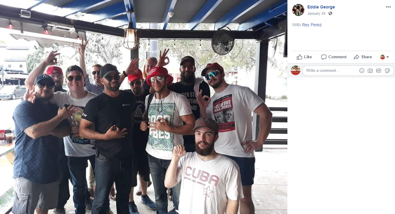 Perez (front, kneeling) with other members of the Miami Proud Boys.