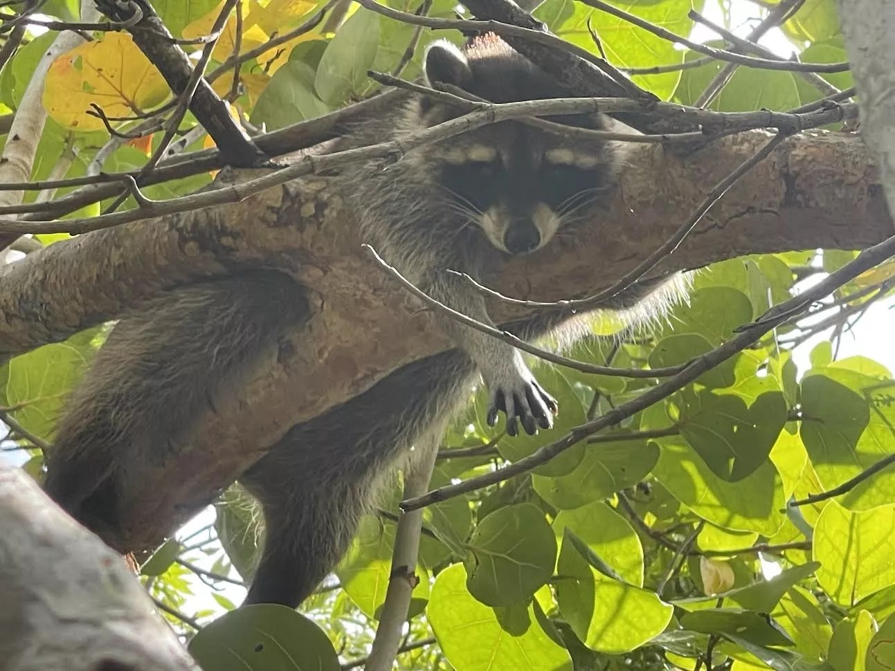 The raccoons ‘ alcove is a short walk away along a well-beaten path winding through a shallow creek and under the stretching limbs of more mangroves.