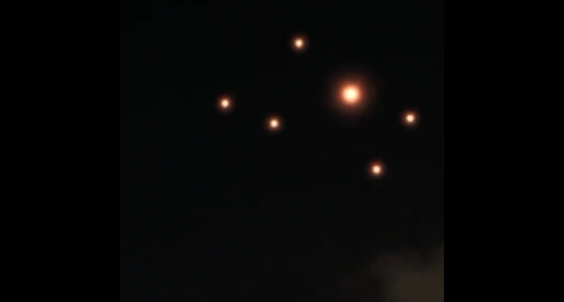 The videos showed a triangular formation of six mysterious lights hovering over the downtown Miami skyline.