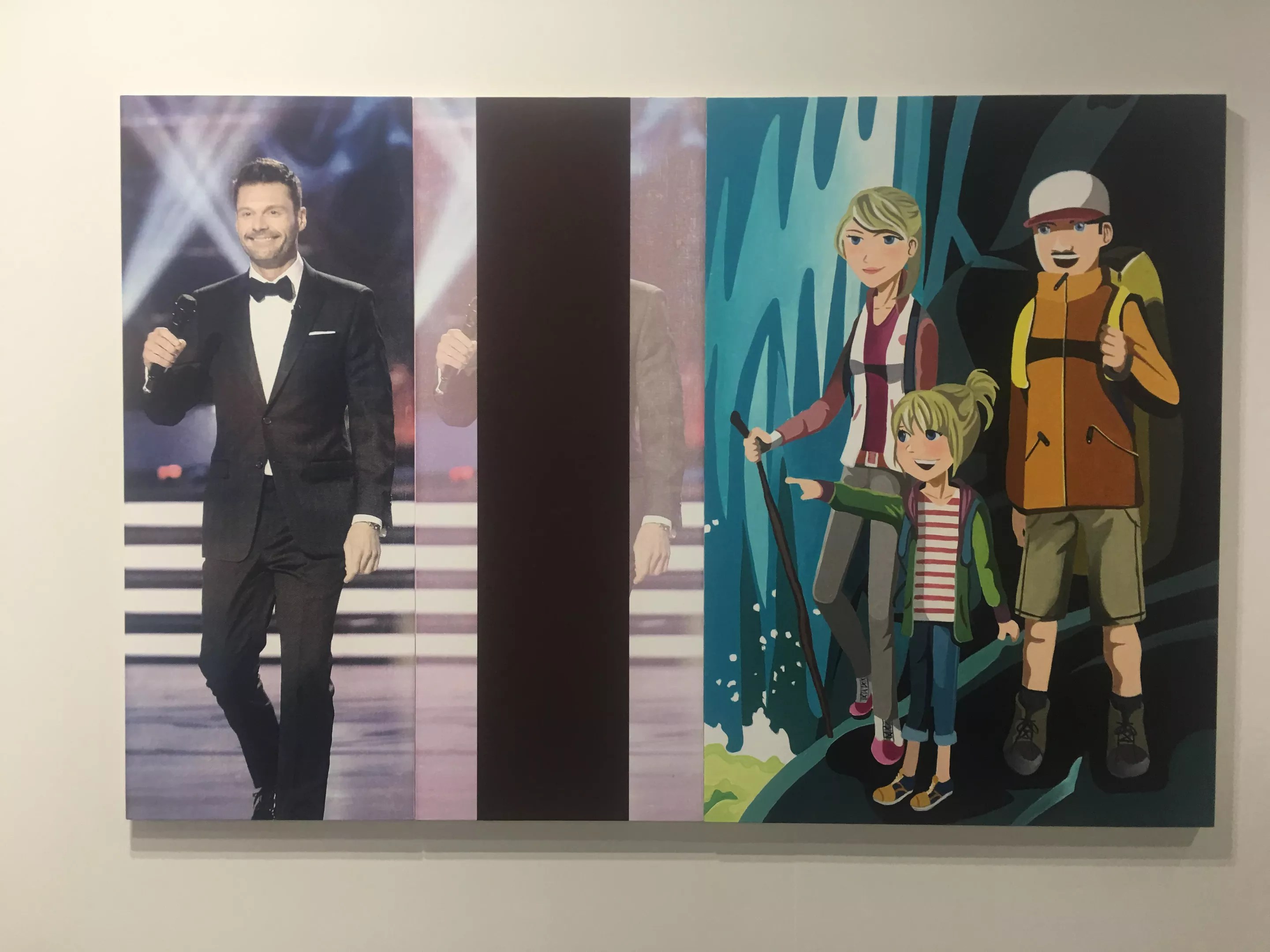 Remember Brian Dunkleman? One of the two co-hosts from season one of American Idol? The guy who vanished without a trace before season two? Well, did you know he’s dead now? (Don’t Google that.) Dunkleman’s body washed up in the Hollywood Reservoir – headless – with defensive wounds on his hands and forearms, consistent with an attack from a piping-hot hair straightener. (Don’t fact-check that. We got it from YouTube.) Look at the painting below – see how the crowd stares in awe at Ryan? Look at how nice his tuxedo fits him. There’s our American hero Ryan! Who’s Brian Dunkleman? We must erase Brian Dunkleman. Want to know something extra-chilling? Ryan Seacrest painted this.