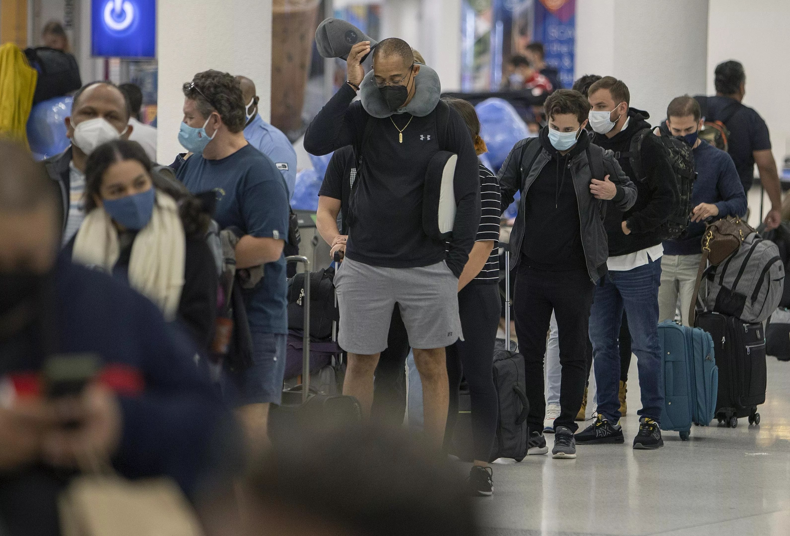 Travelers are herded through a security checkpoint at Miami International Airport.