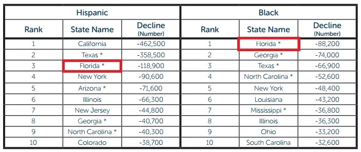 More black children would lose their insurance in Florida than in any other state. The steep losses to Hispanic kids in the Sunshine State would be the nation’s third-worst rate. (The study doesn’t break down the number of white children set to lose coverage by state, but nationwide, 1.6 million white kids would lose coverage.)