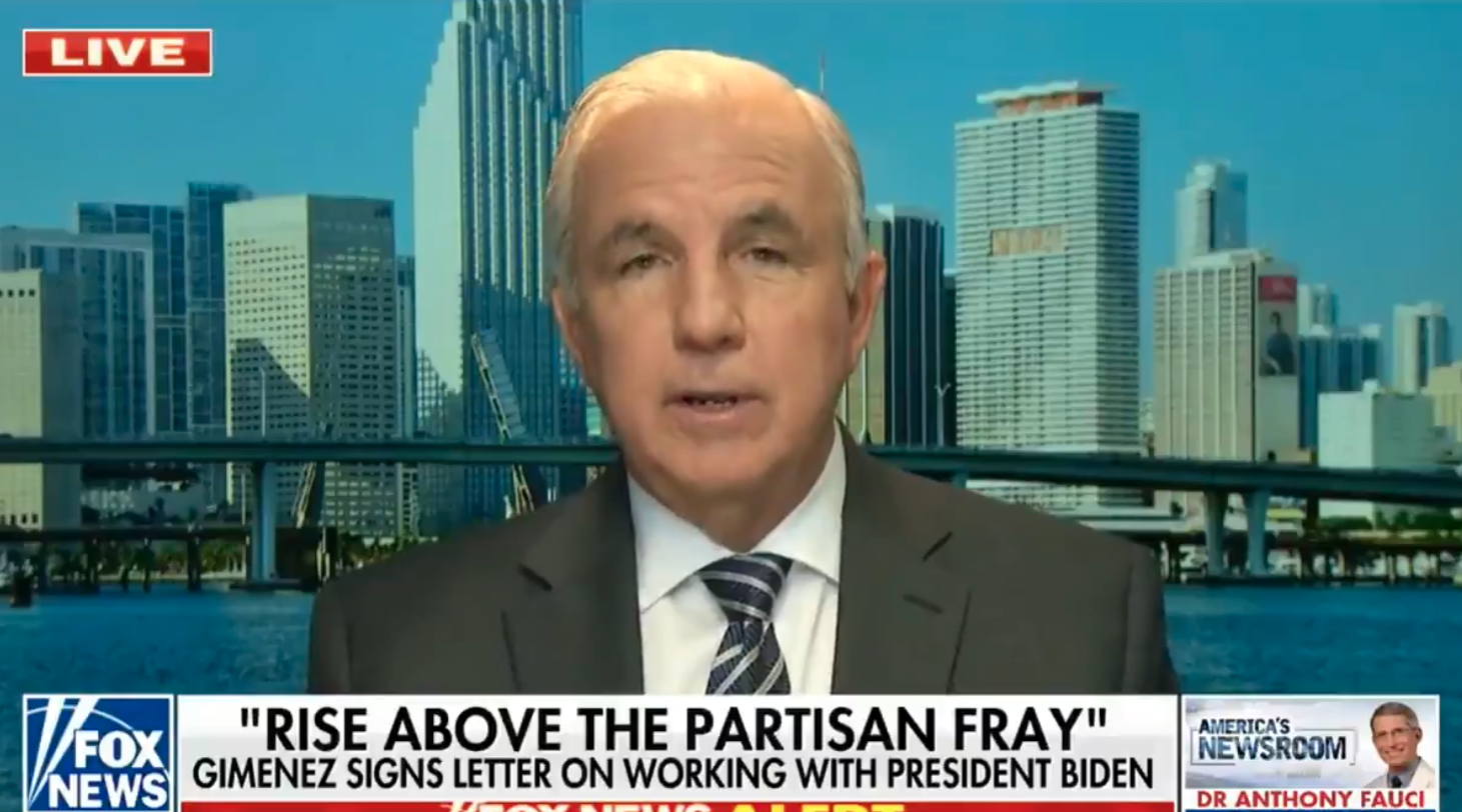 The letter repeats some of the same calls for “unity” Republicans have made since voting to challenge election results in certain states and surviving the insurrection at the U.S. Capitol earlier this month. But less than one week after sending that letter, Giménez is already appearing on Fox News to talk about how he can’t work with the president’s “far-left agenda.”