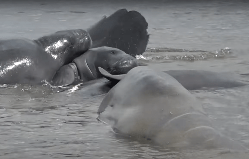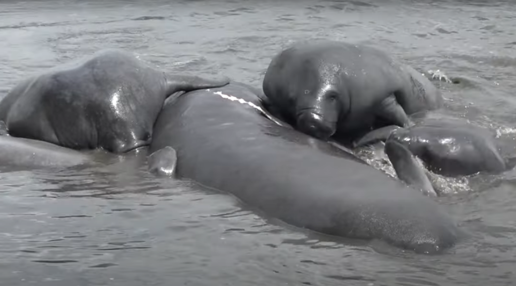 According to the nonprofit group Save the Manatee Club, the effect can be “quite dramatic” in shallower waters, with “churning waters and flailing flukes and flippers.”