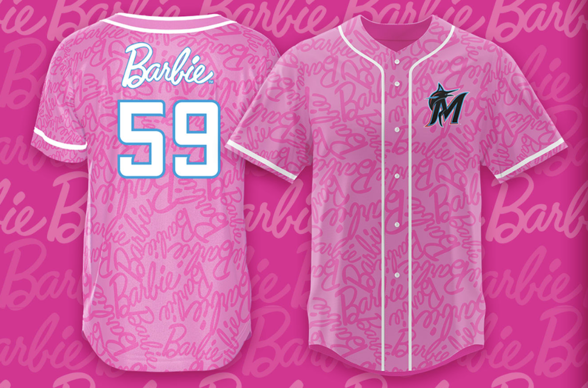 It doesn't get any pinker than this. Behold: The Barbie Marlins jersey.