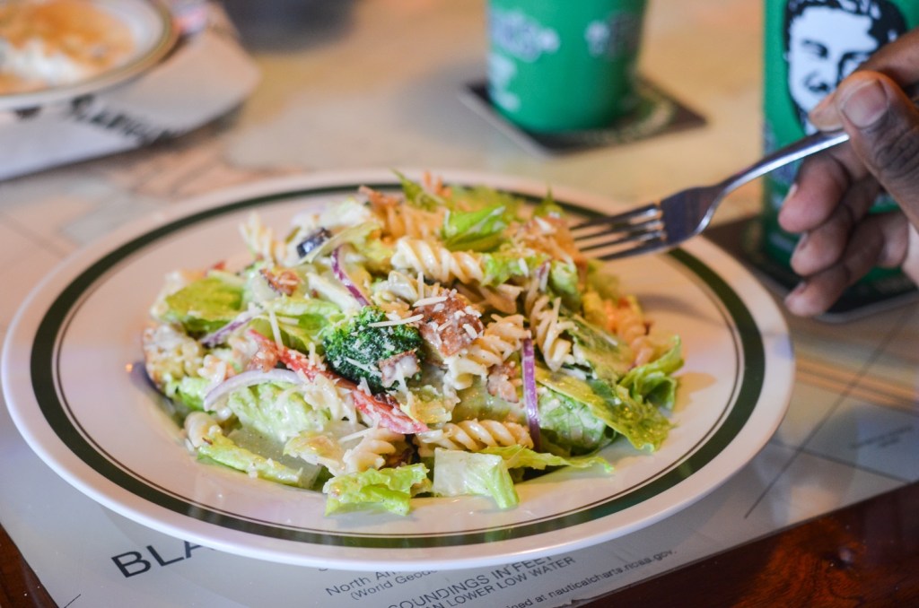 This is one of the most popular dishes at Flanigan’s, but not necessarily the first one out-of-towners should go for. However, it’s incredible in its own right. It features a perfect blend of Flanny’s Caesar salad mixed with its pasta salad, spiral-shaped pasta tossed with red peppers, broccoli, black olives, red onions, Parmesan cheese, and our classic Caesar dressing.