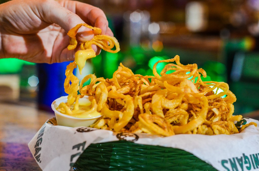 These had to crack the top ten on this list, and for good reason. These deliciously thin, crispy, and hot fried onions are tossed in Flanigan’s housemade batter and fried to order for your snacking pleasure. They’re simply irresistible, so you may have to guard them at the dinner table.