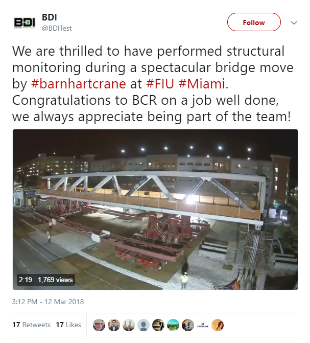 Just three days ago, a firm called BDI celebrated online that the company was “thrilled to have performed structural monitoring” on the project. After the collapse, BDI deleted its tweet: